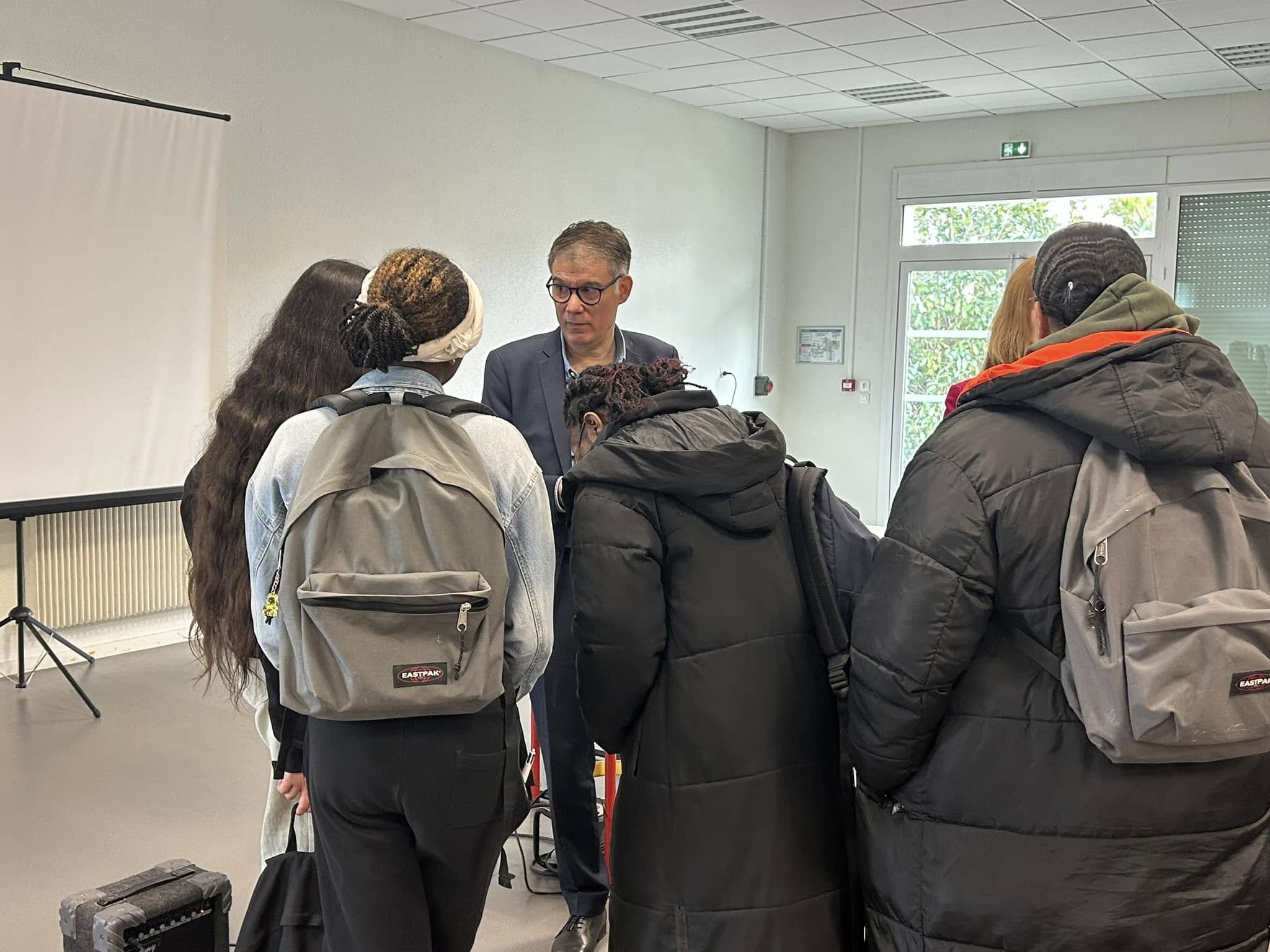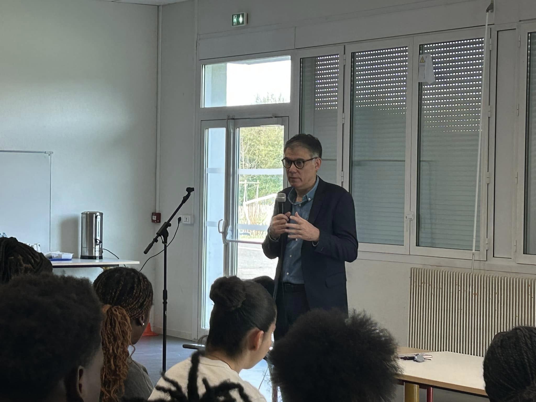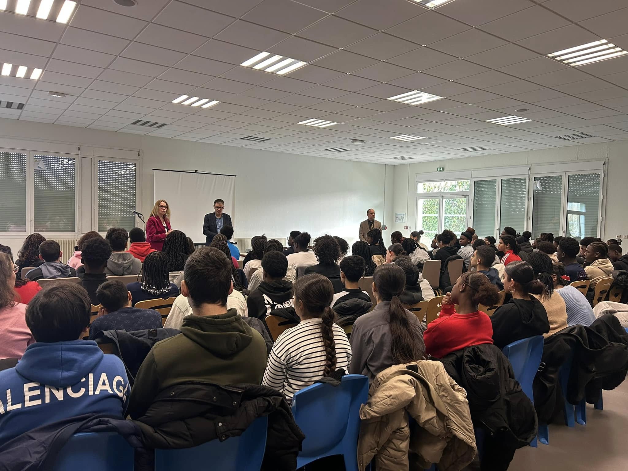 Matinée avec 150 élèves de 3ème du collège Jean de la Fontaine du Mée-sur-Seine où un atelier sciences politiques est prévu à la rentrée prochaine. Échanges sur la citoyenneté française et européenne ainsi que sur l’apprentissage du fonctionnement des institutions républicaines.
